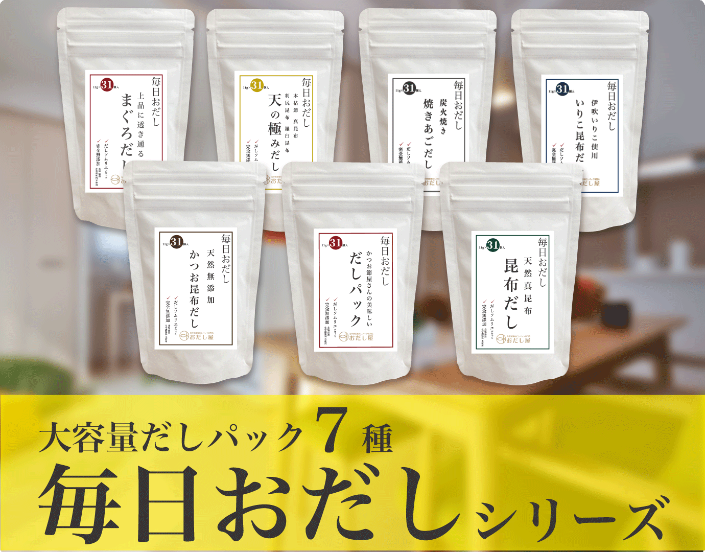 せて、だしソムリエが7種類の商品にブレンドしました。