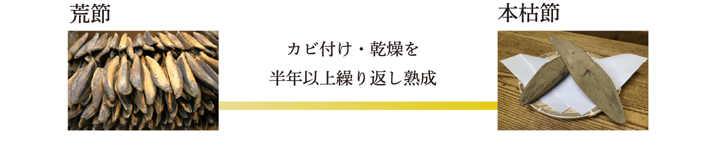 また枯節のカビ付け・乾燥の工程をさらに繰り返し、さらに熟成させたものを「本枯節」と言います。