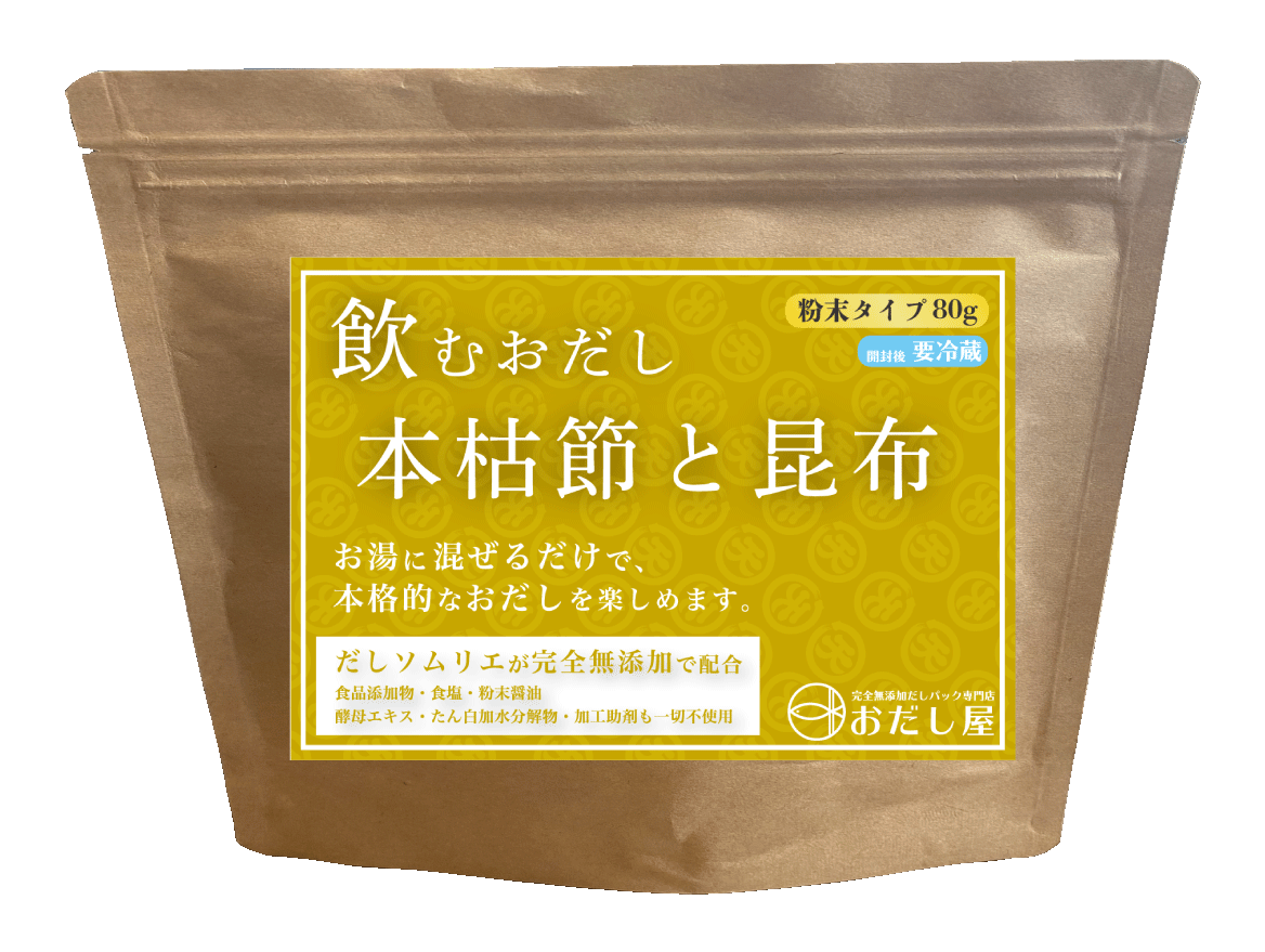 鰹節と真昆布をブレンドした一番だしです。鰹